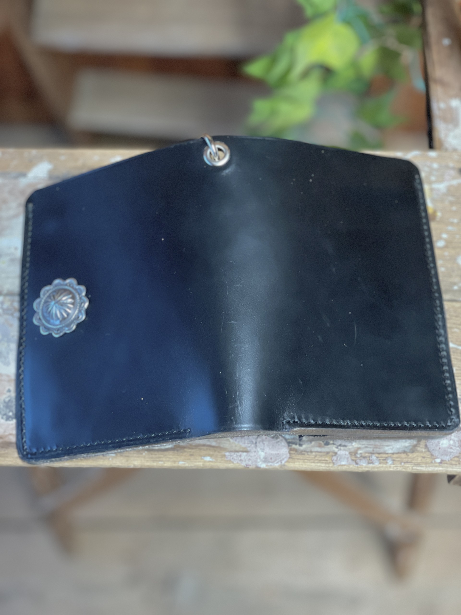 イタリアアリゾナレザー センターコンチョ トラッカーズ コンチョウォレット 財布 / Arizona Sibo leather Center Concyo Tracker Wallet イタリアアリゾナレザー センターコンチョ トラッカーズ コンチョウォレット 財布 / Arizona Sibo leather Center Concyo Tracker Wallet丁度良いサイズ感と機能性に優れたtrackerウォレット 25,000円(税込27,500円)